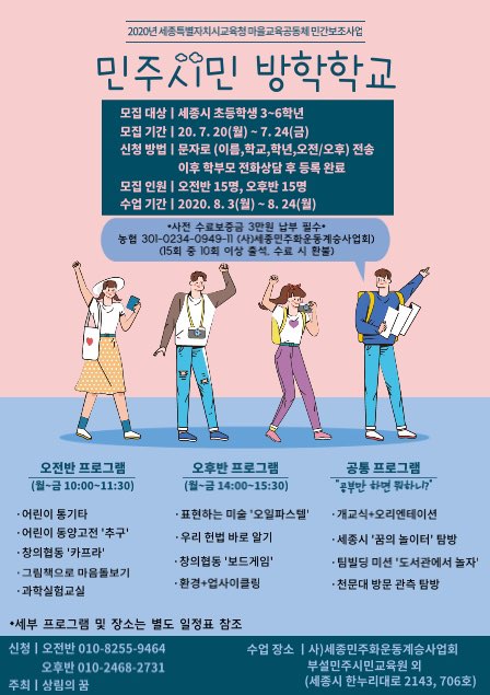 민주시민 방학학교 프로그램 수강생 모집 합니다~
